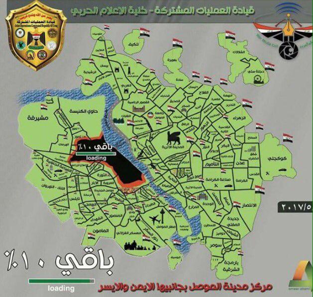 Έτσι, το Ιρακινό Μικτό Επιτελείο Επιχειρήσεων ανακοίνωσε χθες ότι, ο ISIS ελέγχει πλέον μόνο το 10% της Μοσούλης, ενώ ο Ιρακινός Στρατός συνεχίζει την προώθηση του, ενώ καταβάλλονται μεγάλες προσπάθειες για την εκκένωση των αμάχων στις περιοχές που κατέχονται από το ΙΚ.