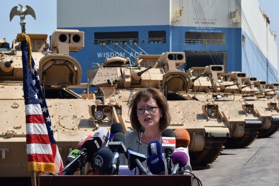 Η παράδοση έγινε σε επίσημη τελετή όπου η Πρέσβης των ΗΠΑ στην Βυρηττό, Elizabeth Richard, ανέφερε ότι «είμαστε εδώ στον λιμένα της Βηρυτού για να πιστοποιήσουμε την παράδοση 8 Τεθωρακισμένων Οχημάτων Μάχης Μ2Α2 Bradley. Αυτά είναι τα πρώτα από τα συνολικά 32 που θα παραδοθούν στους επόμενους μήνες», «αυτή η προσφορά μας στις Ένοπλες Δυνάμεις του Λιβάνου αποτελεί μια επένδυση πάνω από 100 εκ. δολάρια», «θα ενισχύσουν τις Ένοπλες Δυνάμεις του Λιβάνου με επιπλέον δυνατότητες να προστατέψουν τον Λίβανο, να προστατέψουν τα σύνορα και να πολεμήσουν τους τρομοκράτες».