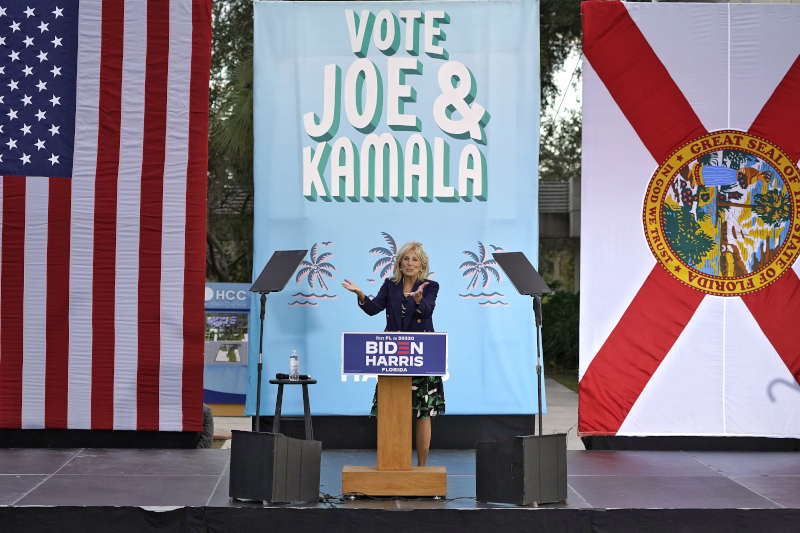 Jill Biden speaks to supporters while campaigning for her husband Democratic presidential candidate and former Vice President