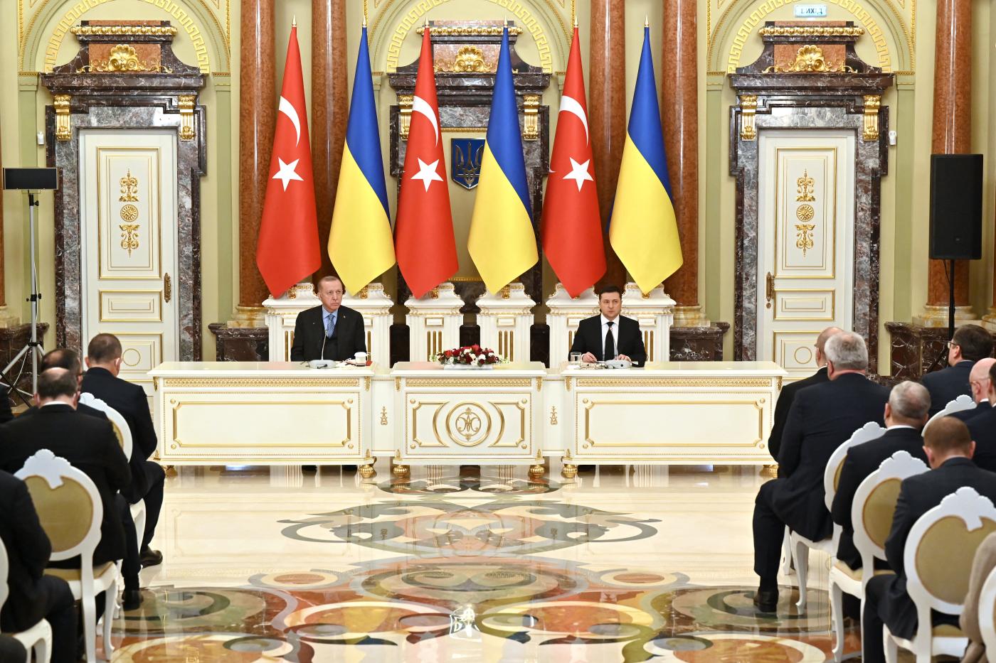 Με την ευκαιρία της συμπλήρωσης τριών δεκαετιών σύγχρονων διπλωματικών σχέσεων Άγκυρας-Κιέβου, της ετήσιας συνάντησης του υψηλόβαθμου συμβουλίου Στρατηγικού Διαλόγου των δύο χωρών, καθώς και λόγω της κλιμακούμενης κρίσης στις σχέσεις Ρωσίας-Ουκρανίας, ο Τούρκος πρόεδρος Ερντογάν μετέβη χθες στο Κίεβο(επίσημη επίσκεψη μετά από πρόσκληση του ομολόγου του Ζελένσκι ) και είχε απ ευθείας ως και διευρυμένες συνομιλίες με τον Ουκρανό ομόλογό του.