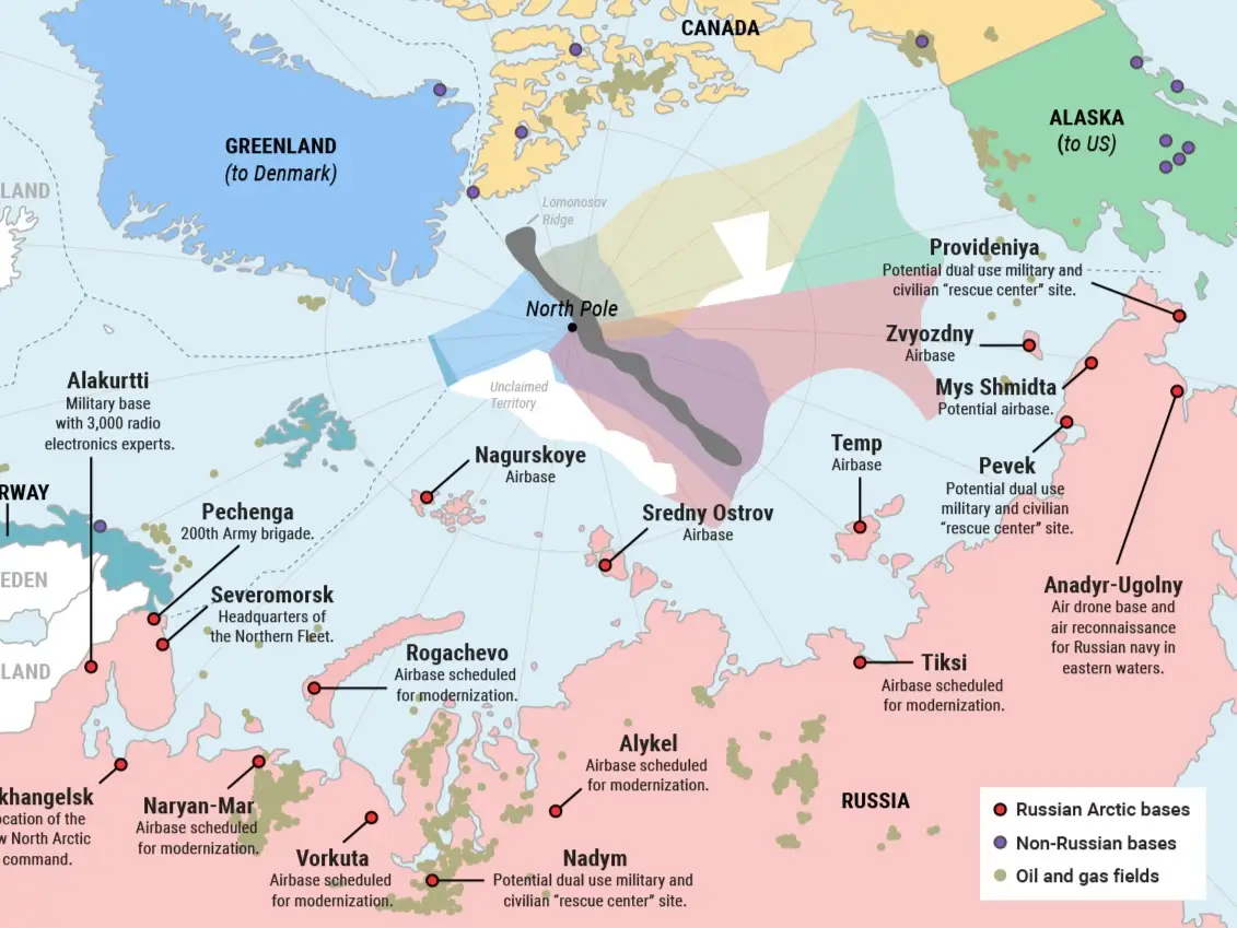 Δύο κυβερνητικά έγγραφα—«Σχετικά με την ανάπτυξη της Αρκτικής ζώνης και τη διασφάλιση της εθνικής ασφάλειας έως το 2035» περιγράφουν το όραμα της Ρωσίας για το ρόλο, τη θέση και τις φιλοδοξίες της στη μακροπεριοχή της Αρκτικής. Εκτός από άλλες πτυχές, αυτά τα έγγραφα υποστηρίζουν ότι για να διατηρήσει η Ρωσία την κυριαρχία της στη βόρεια πολική περιοχή, πρέπει να επιτευχθούν δύο στρατηγικοί στόχοι.