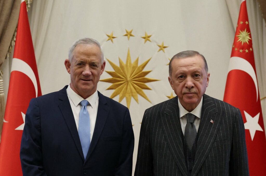 Ο Ερντογάν δέχθηκε τον Μπένι Γκαντζ για συνομιλίες ενώ η Τουρκική προεδρία δεν έδωσε περισσότερες λεπτομέρειες για την κεκλεισμένων των θυρών συνάντηση η οποία πραγματοποιήθηκε στο προεδρικό συγκρότημα. Η Τουρκία και το Ισραήλ έχουν λάβει μέτρα για την εξομάλυνση των πολύ τεταμένων σχέσεων τα τελευταία χρόνια και αποκατέστησαν πλήρεις διπλωματικούς δεσμούς. Ο Ακάρ επεσήμανε ότι «Πιστεύουμε ότι η ενίσχυση της διμερούς συνεργασίας και του διαλόγου μας θα διευκολύνει επίσης την επίλυση ορισμένων θεμάτων για τα οποία έχουμε διαφωνίες, ιδιαίτερα για την Παλαιστίνη». Ταυτόχρονα πρόσθεσε ότι έχουμε σοβαρούς δεσμούς και κοινές αξίες μεταξύ της Τουρκίας και του Ισραήλ, τόσο ιστορικά, τουριστικά όσο και πολιτιστικά. «Θα ήθελα να πω ότι ως Τουρκία, η ανάπτυξη των σχέσεων και της συνεργασίας μας με το Ισραήλ, ειδικά σε τομείς όπως η άμυνα, η ασφάλεια και η ενέργεια, θα οδηγήσει σε σημαντικές εξελίξεις σχετικά με την περιφερειακή ειρήνη και σταθερότητα και θα συμβάλει σημαντικά», είπε ο Τούρκος υπουργός άμυνας.