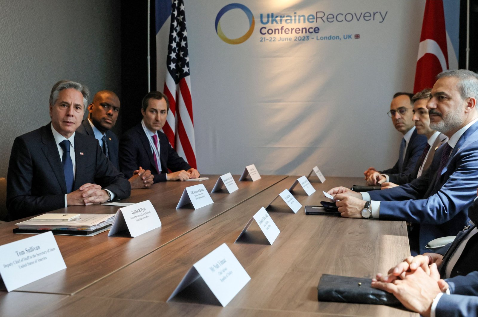 Ο υπεξ των ΗΠΑ Άντονι Μπλίνκεν(προερχόμενος από το Πεκίνο) θα συναντηθεί με τον Τούρκο ομόλογό του Χακάν Φιντάν στο περιθώριο της διάσκεψης για την ανάκαμψη της Ουκρανίας που έχει προγραμματιστεί για σήμερα και αύριο στο Λονδίνο.Αποκλειστικές πληροφορίες του υπογράφοντα από Αμερικανικές, Νατοικές και Τουρκικές πηγές επισημαίνουν ότι ότι το κορυφαίο θέμα της ημερήσιας διάταξης της συνάντησης είναι οι συνεχιζόμενες αντιρρήσεις της Τουρκίας για την ένταξη της Σουηδίας στο ΝΑΤΟ.Αμερικανοί και Νατοϊκοί πιέζουν έντονα και συνεχώς την Άγκυρα να αλλάξει στάση, ενώ στο Λονδίνο βρίσκεται και ο πρωθυπουργός της Σουηδίας.