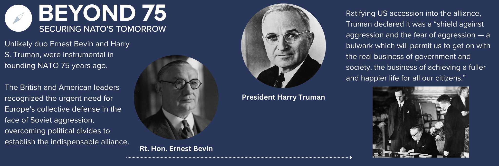 Ένας Άγγλος συνδικαλιστής και ένας αγρότης από το Ιντιπέντενς του Μιζούρι συνέστησαν την κορυφαία στρατιωτική συμμαχία στον κόσμο. . Μπορεί να φαίνεται περίεργο ότι αυτοί οι δυο άνδρες που ήσαν πίσω από τη δημιουργία του ΝΑΤΟ θα ταίριαζαν σε μεγάλο βαθμό . Ο Έρνεστ Μπέβιν, που θεωρείται ευρέως ως ο κύριος αρχιτέκτονας του ΝΑΤΟ, μεγάλωσε στο Σόμερσετ από μια αναλφάβητη ανύπαντρη μητέρα που πέθανε όταν ήταν οκτώ ετών. Παράτησε το σχολείο στα 11 του, δουλεύοντας ως εργάτης και οδηγός φορτηγού, μέχρι που τελικά έγινε συνδικαλιστής. Όπως πολλοί συνδικαλιστές με εμπειρία από πρώτο χέρι της αριστεράς, ανέπτυξε μια απέχθεια για τον κομμουνισμό και μια ξεκάθαρη επίγνωση της απειλής που θέτει ο κόκκινος ολοκληρωτισμός για τη δημοκρατική Δύση. Αν και διαφωνούσαν έντονα σχεδόν σε όλα τα άλλα θέματα , ο Ουίνστον Τσόρτσιλ αξιολόγησε τον Μπέβιν πολύ θετικά , αποκαλώντας τον “ως το πιο διακεκριμένο άνθρωπο που έχει εμφανίσει το Εργατικό Κόμμα εδώ και πολλά χρόνια “.