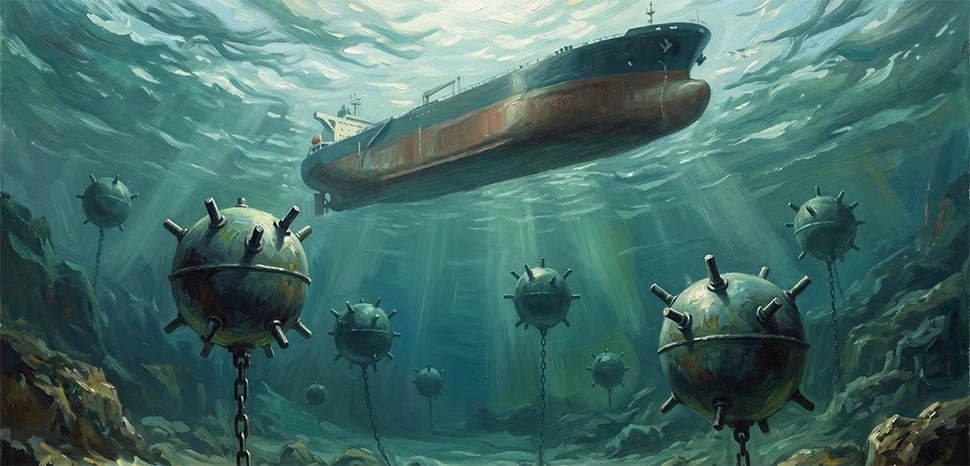 Τελευταία, το Ιράν, με το πρόσχημα της ύπαρξης θαλάσσιων ναρκών (πλαίσιο ABCD, παραπάνω χάρτη), πρότεινε την αλλαγή του πλου των πλοίων και τη διέλευσή, κατά την είσοδό τους, μεταξύ του νησιού Λαράκ και των ακτών του Ιράν. Πρόκειται για μια περιοχή που η ναυτιλιακή επιθεώρηση Lloyd’s List, αποκαλεί χαρακτηριστικά «σταθμό διοδίων της Τεχεράνης».